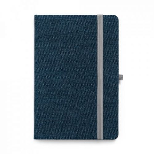 Caderno capa dura. Jeans. 96 folhas pautadas. Bolso interior. Suporte para esferográfica. Esferográfica não inclusa. 140 x 210 mm- Acessórios de Mesa