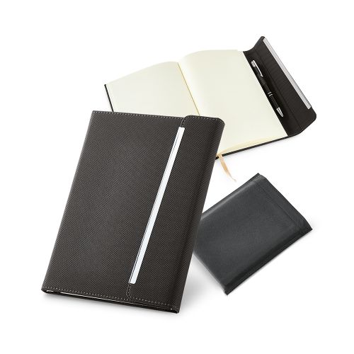 Caderno capa dura. C. sintético. Fecho magnético. Com porta esferográfica e 96 folhas não pautadas cor marfim. Fornecido em embalagem de non-woven. Esferográfica não inclusa. 148 148 x 210 mm | Bolsa: 185 x 240 mm